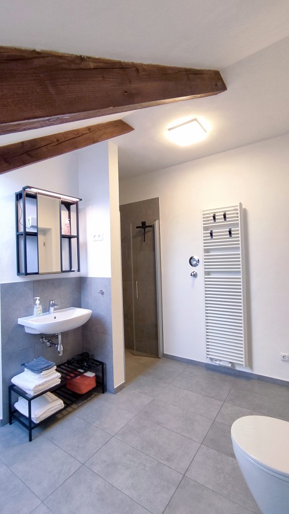 - Badezimmer: Dusche, Badewanne, Haarföhn, Shampoo