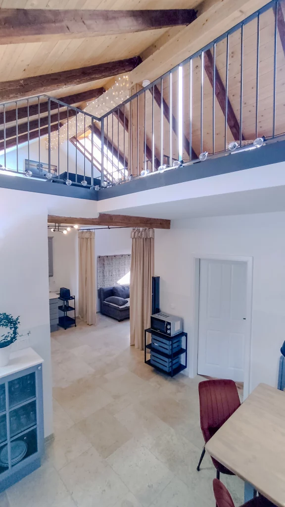 Die Galeriewohnung hat seinen eigenen Charme und ist liebevoll modern eingerichtet. Man fühlt sich sofort wohl. Auch die Terrasse im Garten konnte genutzt werden. Man hat sehr viele schöne Möglichkeiten für Unternehmungen. Städteanbindungen sind top. Wir waren als Familie mit Hund vor Ort und würden gerne wieder kommen. Die Kommunikation mit den Vermietern war super nett 🙂