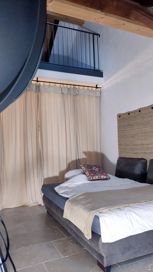 Schlafsofa und Einzelbett auf der Galerie - Wellness-Badezimmer: